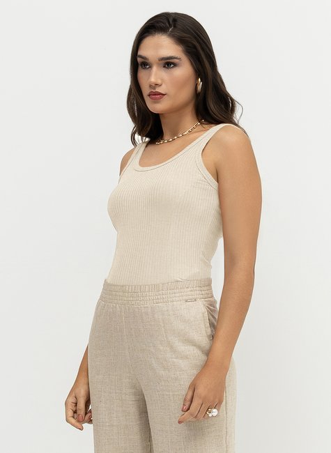 Clássica e essencial, esta blusa canelada cavada com decote redondo e modelagem ajustada ao corpo é daquelas peças que atravessam temporadas sem perder o estilo. Simples na medida certa, é versátil, duradoura e se adapta a diferentes combinações no guarda-roupa.