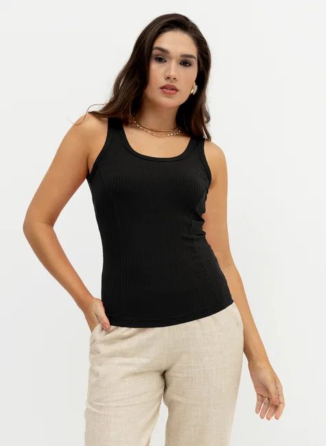 Clássica e essencial, esta blusa canelada cavada com decote redondo e modelagem ajustada ao corpo é daquelas peças que atravessam temporadas sem perder o estilo. Simples na medida certa, é versátil, duradoura e se adapta a diferentes combinações no guarda-roupa.