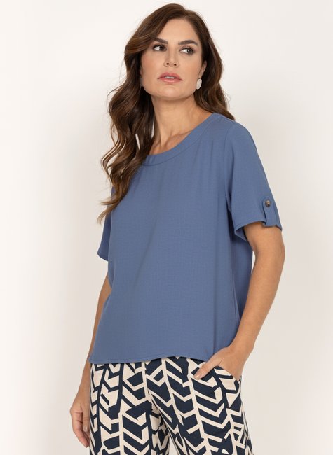 Ideal para compor looks de verão frescos e elegantes, a blusa combina perfeitamente com peças leves. Inspire-se na composição da foto, com uma calça de viscose estampada, para criar um visual harmonioso, atual e cheio de personalidade.