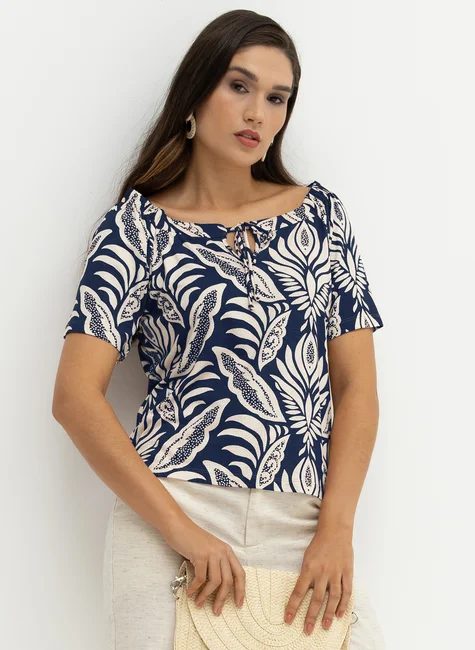 Blusa confeccionada em malha de viscose, conhecida pelo toque macio e pelo caimento leve. Seu design traz uma estampa floral abstrata, moderna e contemporânea, perfeita para looks frescos e cheios de personalidade.