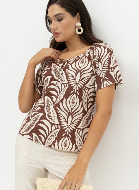 Blusa em Malha de Viscose com Detalhe de Amarração no Decote
