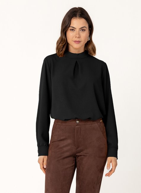Blusa de Manga Longa com Gola Alta e Detalhes Sofisticados
