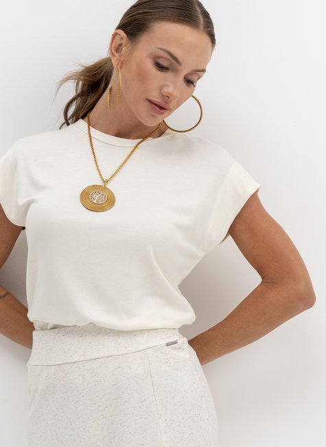 Blusa Malha de Viscose Texturizada Manga Japonesa Cru