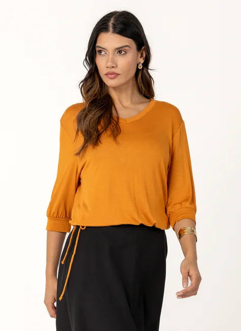 - Cavas levemente caídas. Efeito blusado com cordão regulador.