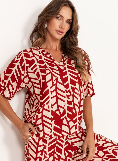 Para um visual ainda mais harmonioso, combine com a calça da mesma estampa e crie um conjunto versátil, ideal para diversas ocasiões.