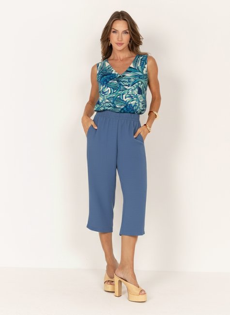 Calça pantacourt confeccionada em tecido Airflow, conhecido pela leveza, toque suave: perfeita para os dias mais quentes. O modelo possui cós com elástico, que garante conforto e melhor ajuste ao corpo, além de dois bolsos frontais funcionais que adicionam praticidade ao visual. Com caimento solto e comprimento pantacourt, a peça oferece movimento e elegância em cada detalhe.