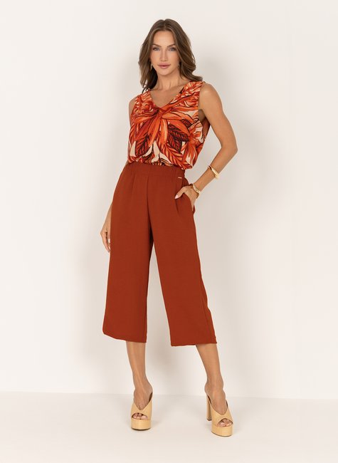 Calça pantacourt confeccionada em tecido Airflow, conhecido pela leveza, toque suave: perfeita para os dias mais quentes. O modelo possui cós com elástico, que garante conforto e melhor ajuste ao corpo, além de dois bolsos frontais funcionais que adicionam praticidade ao visual. Com caimento solto e comprimento pantacourt, a peça oferece movimento e elegância em cada detalhe.