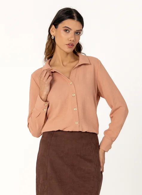 - Efeito blusado. Punho de abotoamento duplo.