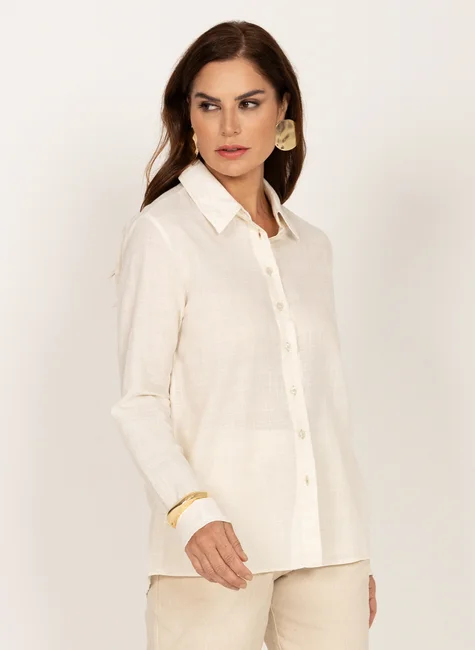 Camisa Manga Longa Linho com Viscose e Algodão Cru