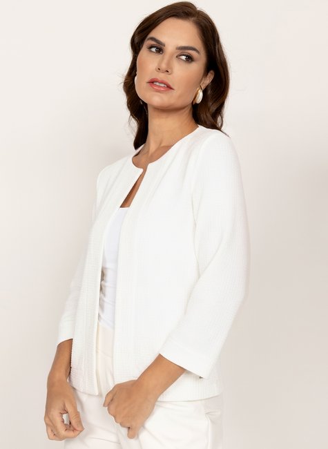 Apresentamos o Casaqueto em Malha Texturizada, a terceira peça ideal para elevar qualquer look com sofisticação e conforto. Confeccionado em uma malha estruturada e elegantíssima com textura, o casaqueto garante um visual refinado e um caimento solto e elegante. Sua estrutura firme oferece um toque sofisticado, diferente da malha tradicional.