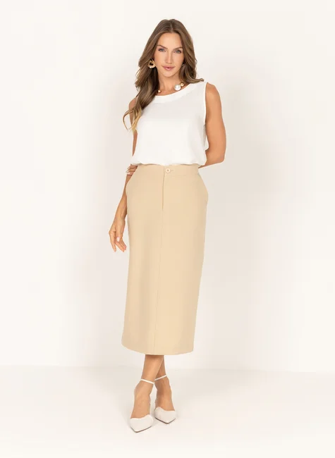 Saia Mídi Alfaiataria com Bolsos