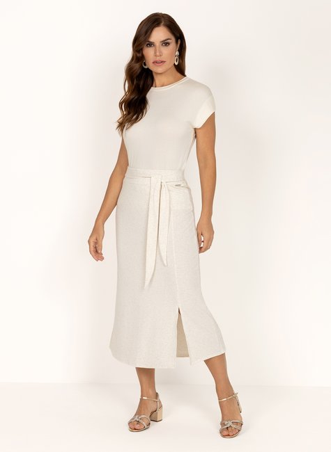 Saia Mídi com Amarração e Fenda em Moletinho Linho