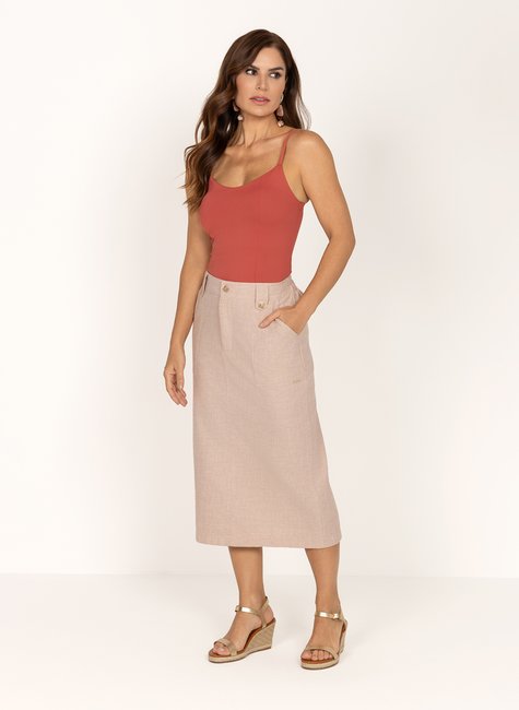 Saia Mídi Cotton Linho