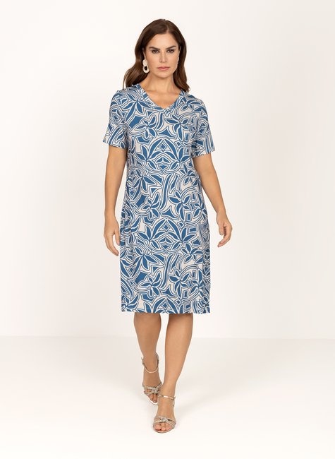Vestido Clássico em Malha de Viscose Estampado