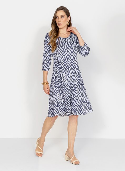 Vestido Clássico Evasê Mangas 3/4 em Essence Estampado