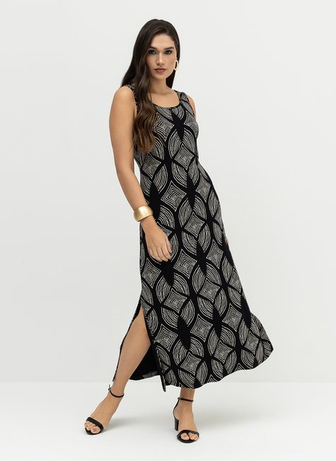 Vestido Longo com Fenda em Malha de Viscose Estampado