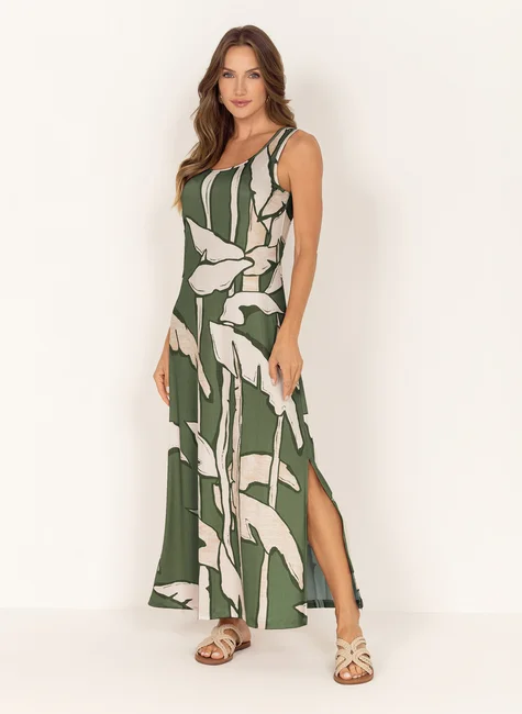 Vestido Longo em Essence Estampado Verde