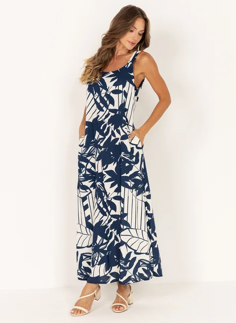 Refrescante, leve e cheio de charme, este vestido estampado é a escolha perfeita para os dias quentes de verão. Confeccionado em 100% viscose, ele oferece um toque macio e um caimento naturalmente fluido, garantindo conforto o dia todo.