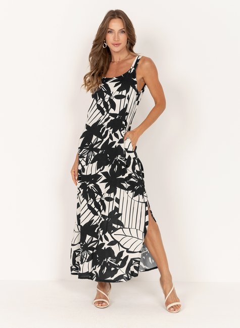 Refrescante, leve e cheio de charme, este vestido estampado é a escolha perfeita para os dias quentes de verão. Confeccionado em 100% viscose, ele oferece um toque macio e um caimento naturalmente fluido, garantindo conforto o dia todo.