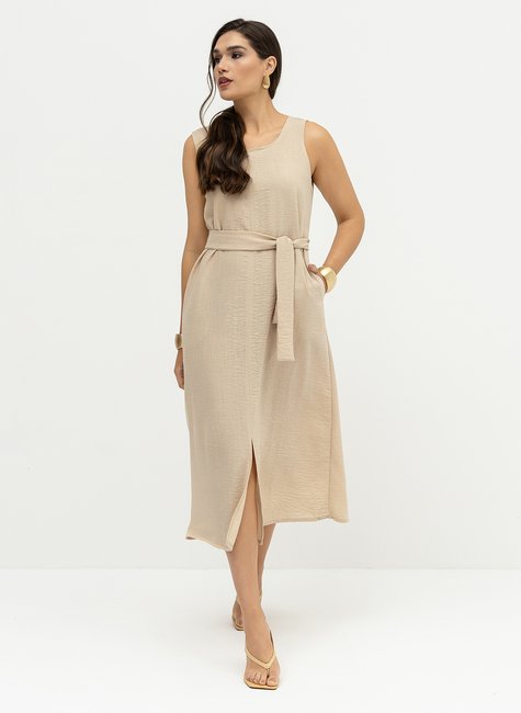 Vestido Mídi Com Bolsos Fenda e Amarração