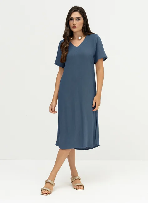 Vestido Mídi em Viscose com Linho com Fendas