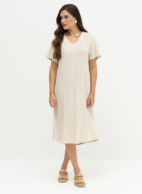 Vestido Mídi em Viscose com Linho com Fendas