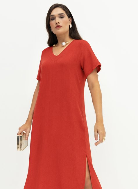 Vestido Mídi em Viscose com Linho com Fendas