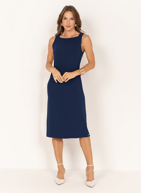Vestido confeccionado em malha relevo, que traz textura e um toque diferenciado ao visual. O modelo possui comprimento midi, caimento levemente ajustado ao corpo e design sem mangas, com alças delicadas e decote quadrado que valoriza o colo com elegância. Uma peça moderna e feminina, ideal para compor produções versáteis que transitam do dia à noite com facilidade.